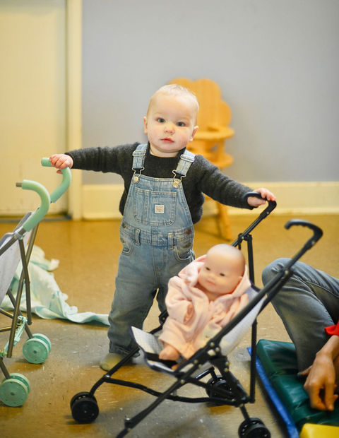 Our waddler class is a designed to encourage exploration for our older infants. Play-based curriculum that allows for choice.